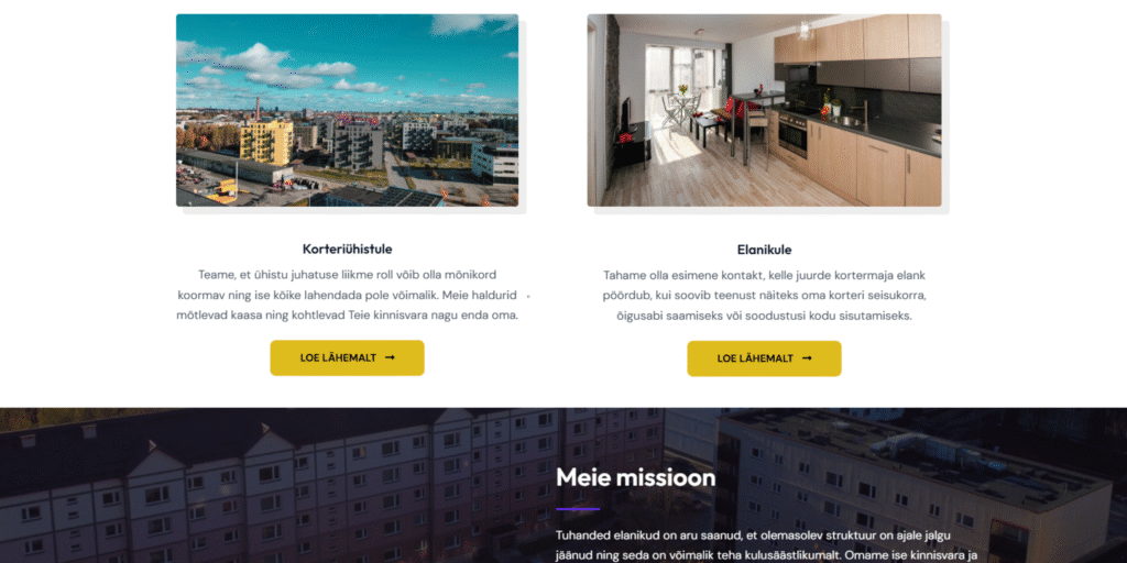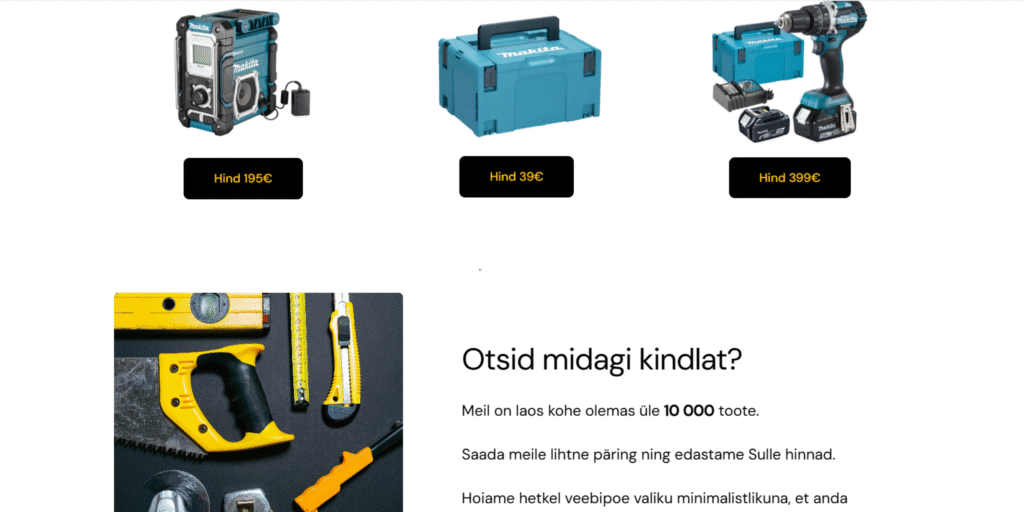 Kodulehekülg valmib kiirelt ning see sisaldab kõiki komponente, et külastaja leiaks info kiirelt, ilma üleliigseid lisaklikke tegemata. Sul on võimalik valida sarnane lahendus meie olemasolevate tööde põhjal või edastada mõni silmajäänud disainlahendus.